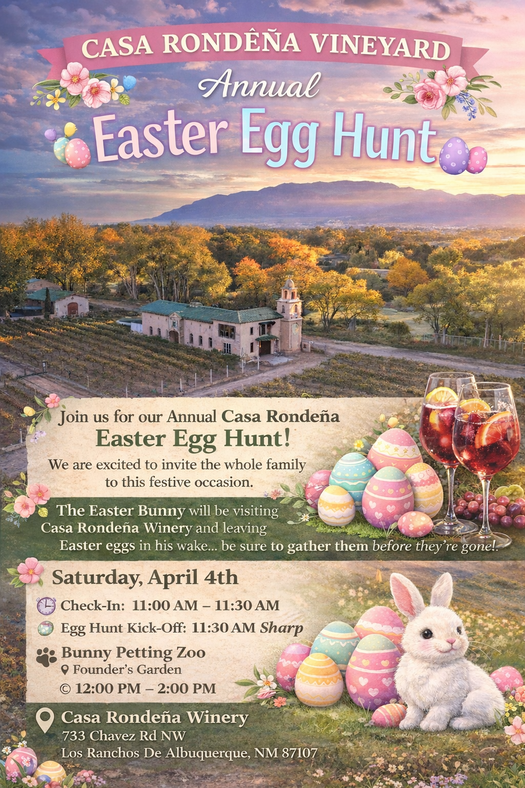 While the kids are on the hunt, adults can sip on our egg-cellent Easter sangria π·. Stick around for an egg-citing Easter basket raffle, live music, delicious food, and of course, plenty of wine to go around.